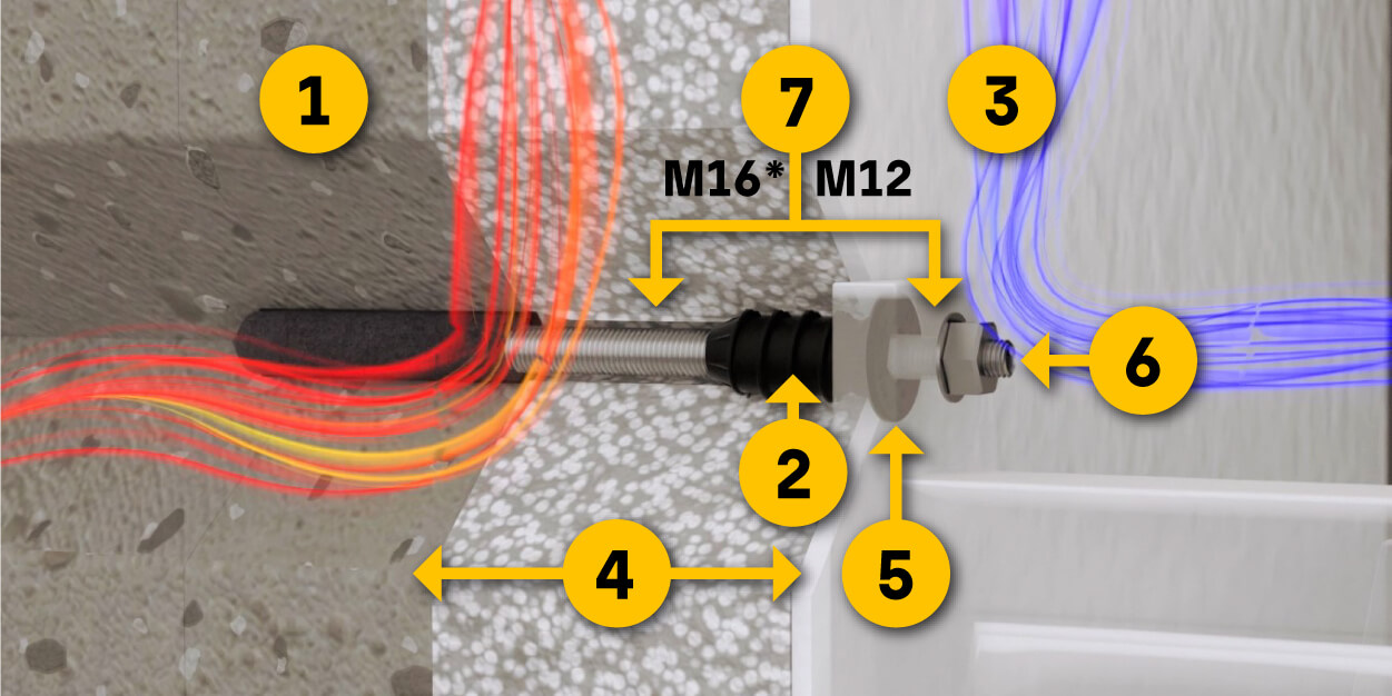 Like ResiTHERM® 16, ResiTHERM® 12 is ETA-approved, driving rain-proof according to DIN EN 1027 and quick to install. The two innovative products differ in the diameter of the threaded rod lying in the wall - M12 for ResiTHERM® 12 as opposed to the larger M16 threaded rod for ResiTHERM® 16.